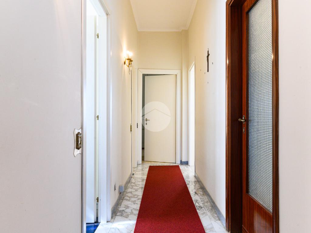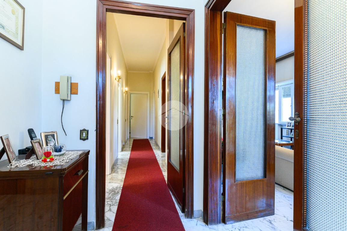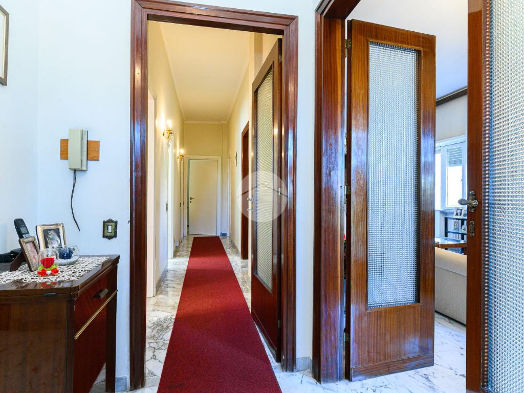 L'appartamento si compone di ingresso con finestra, ripostiglio, salone doppio con accesso su due balconi i quali affacciano su due lati diversi, cucina abitabile con balcone,ampia camera matrimoniale con balcone , seconda camera e doppi servizi entrambi finestrati. Tale soluzione abitativa presenta una quadrupla esposizione che garantisce un'ottima luminosità.